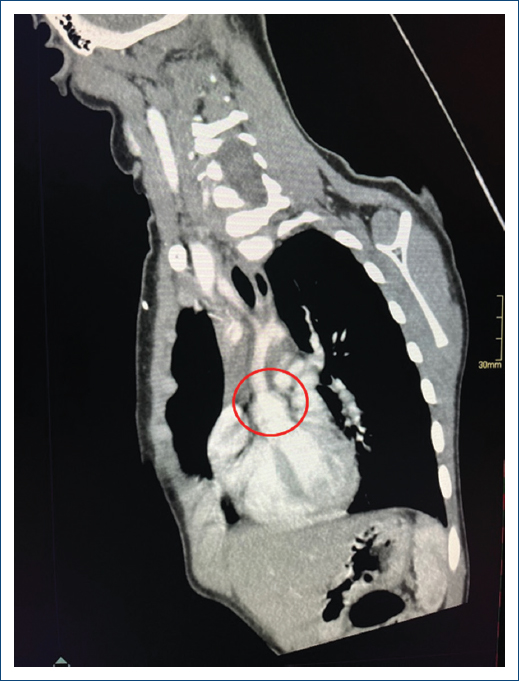 In the immediate post-operative period, bleeding was greater than usual, necessitating re-intervention. The patient was discharged 15 days after surgery with cardiological follow-up and is awaiting a new control chest angiotomography.