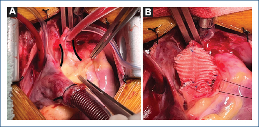 The early complications reported with the Doty technique11 include severe arrhythmias, acute myocardial ischemia, and the need for ECMO. In our case, the main complication was post-surgical bleeding, requiring re-exploration. The porosity of the artificial patch used is likely the cause of the post-surgical event.